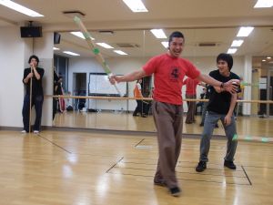 小道具の剣には壊れないように緑のテープが
